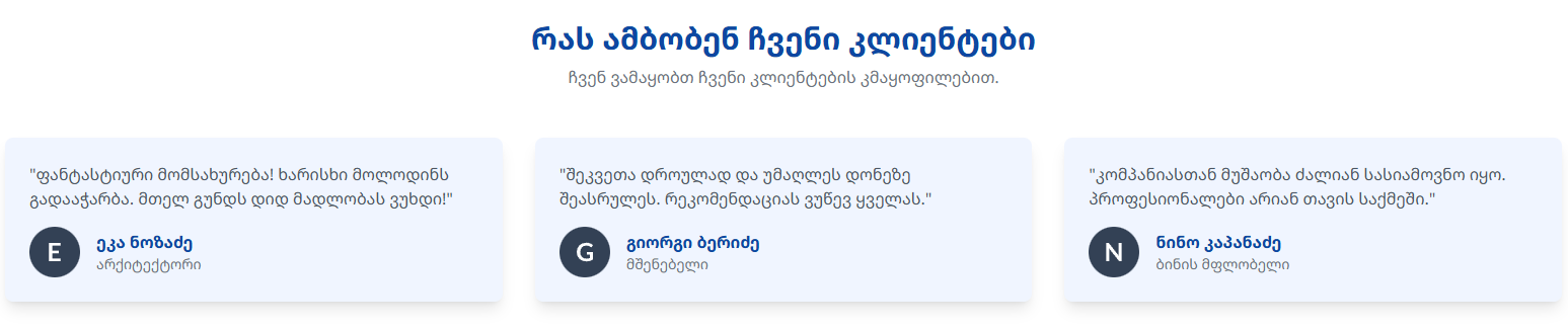 🏗️ პროფესიონალური და სანდო იმიჯი: პირველივე წამებიდან ვქმნით შთაბეჭდილებას, რომ თქვენს კომპანიას შეიძლება ენდო. დიზაინი დახვეწილია და შთაგონებულია სფეროს საუკეთესო მაგალითებით.